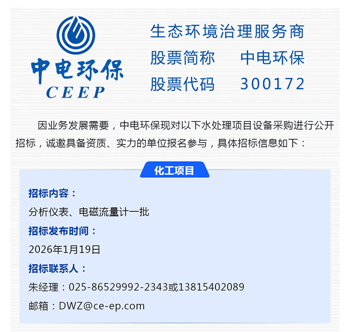 中电环保股份有限公司是南京市首家环保上市公司(股票简称:中电环保,股票代码:300172),南京环保产业协会会长单位,国家级联盟理事长单位,是生态环境治理服务商,主营(3+1):水务、固危废、烟气治理及产业创新平台,包括:工业水处理、污水处理及水环境综合治理;固危废土壤、污泥餐厨垃圾处理;烟气及VOCS治理;智慧环保;高端装备等。
