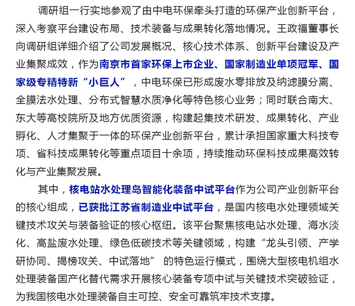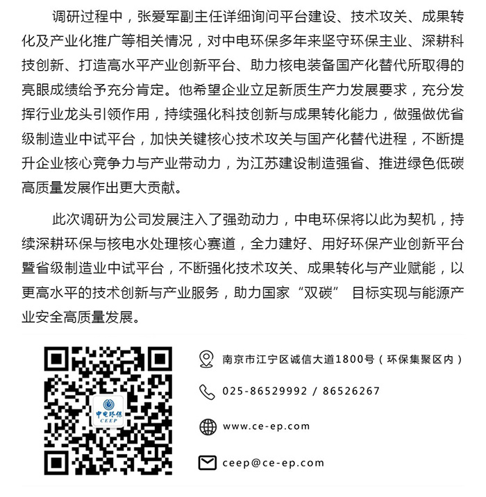 中电环保股份有限公司是南京市首家环保上市公司(股票简称:中电环保,股票代码:300172),南京环保产业协会会长单位,国家级联盟理事长单位,是生态环境治理服务商,主营(3+1):水务、固危废、烟气治理及产业创新平台,包括:工业水处理、污水处理及水环境综合治理;固危废土壤、污泥餐厨垃圾处理;烟气及VOCS治理;智慧环保;高端装备等。