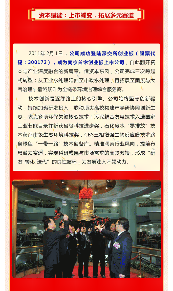 中电环保股份有限公司是南京市首家环保上市公司(股票简称:中电环保,股票代码:300172),南京环保产业协会会长单位,国家级联盟理事长单位,是生态环境治理服务商,主营(3+1):水务、固危废、烟气治理及产业创新平台,包括:工业水处理、污水处理及水环境综合治理;固危废土壤、污泥餐厨垃圾处理;烟气及VOCS治理;智慧环保;高端装备等。