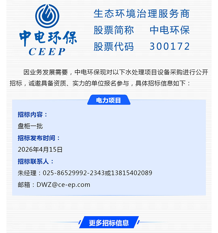中电环保股份有限公司是南京市首家环保上市公司(股票简称:中电环保,股票代码:300172),南京环保产业协会会长单位,国家级联盟理事长单位,是生态环境治理服务商,主营(3+1):水务、固危废、烟气治理及产业创新平台,包括:工业水处理、污水处理及水环境综合治理;固危废土壤、污泥餐厨垃圾处理;烟气及VOCS治理;智慧环保;高端装备等。